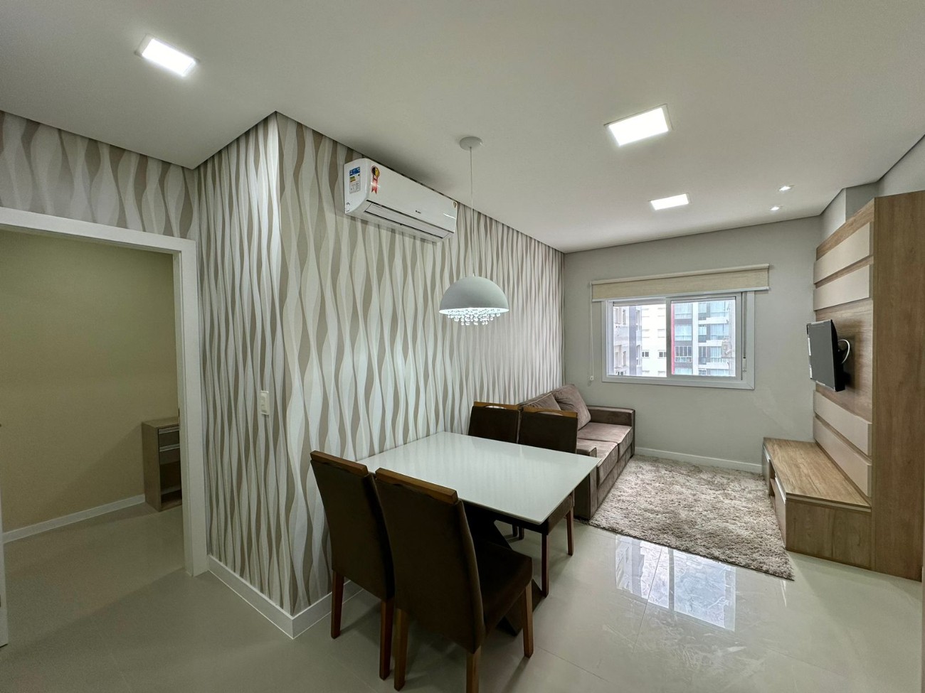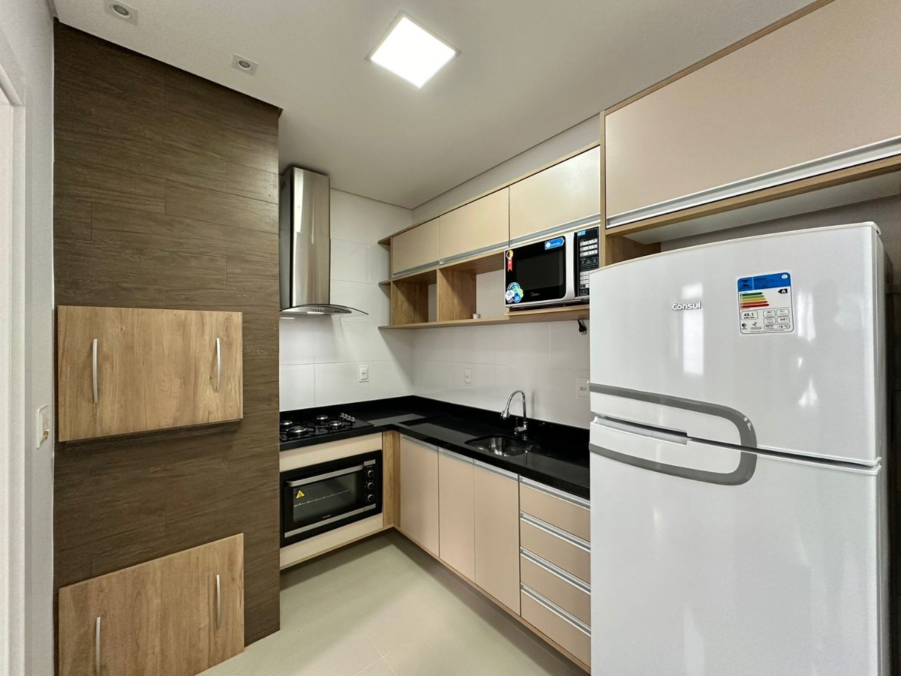 Apartamento diferenciado, 1 dormitório (suíte), lavabo, sala de estar e jantar, sacada integrada ao living, churrasqueira, cozinha americana, área de serviço, box de estacionamento.
