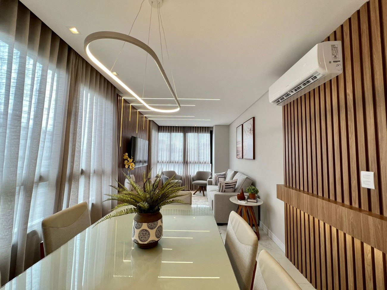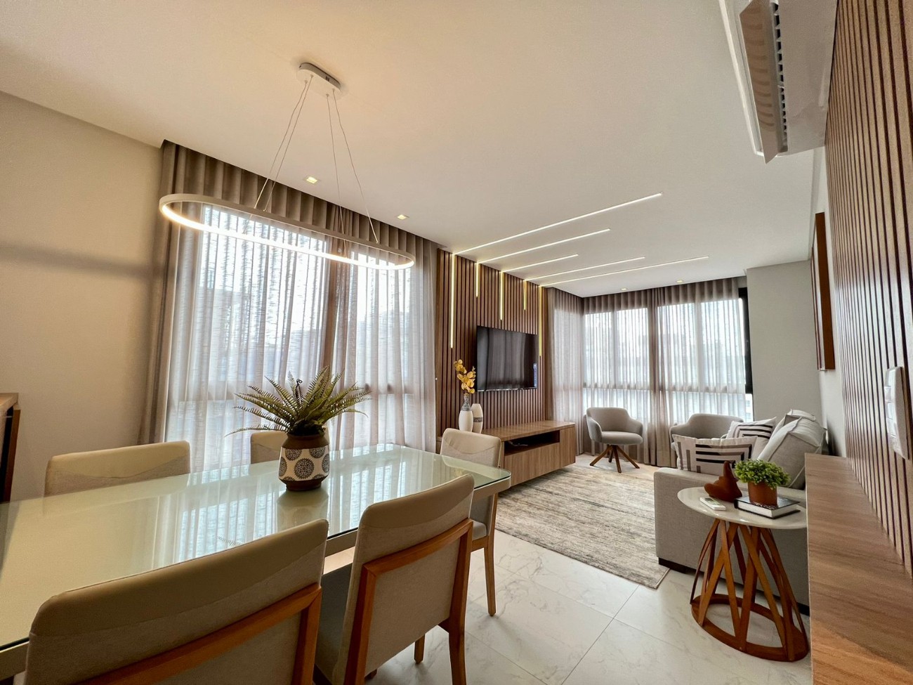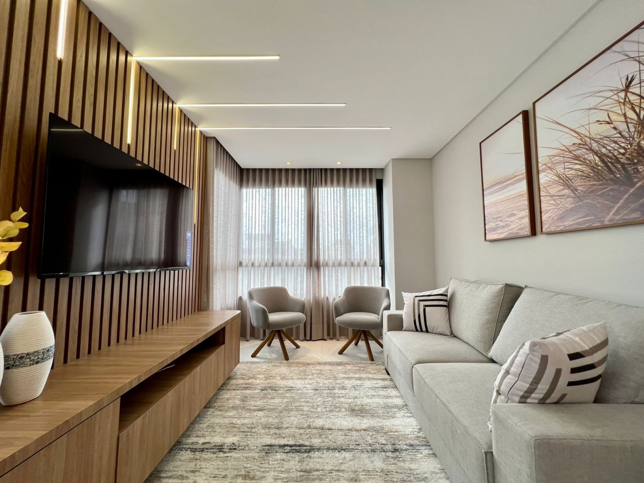 Apartamento em andar alto, finamente mobiliado e decorado, composto por 2 dormitórios, suíte, banho social, living em 2 ambientes, sacada de frente integrada, cozinha, churrasqueira, lavanderia, apto bem iluminado e ventilado, box para carro. Edifício de fino acabamento com hall decorado, 2 elevadores digitais.