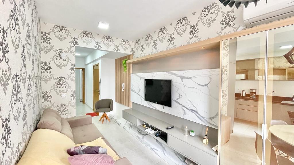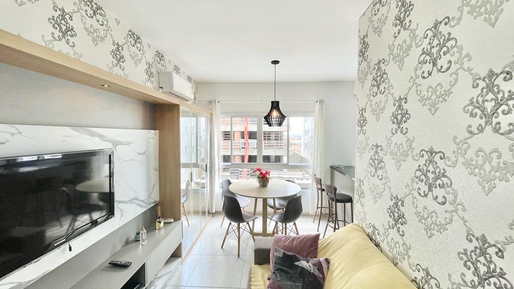 Apartamento de 2 dormitórios (sendo um suíte), mobiliado e decorado, com área de serviço, churrasqueira, banheiro social, box pra carro, ar-condicionado, localizado no Bairro Zona Nova Capão da Canoa, a poucos metros do Mar.