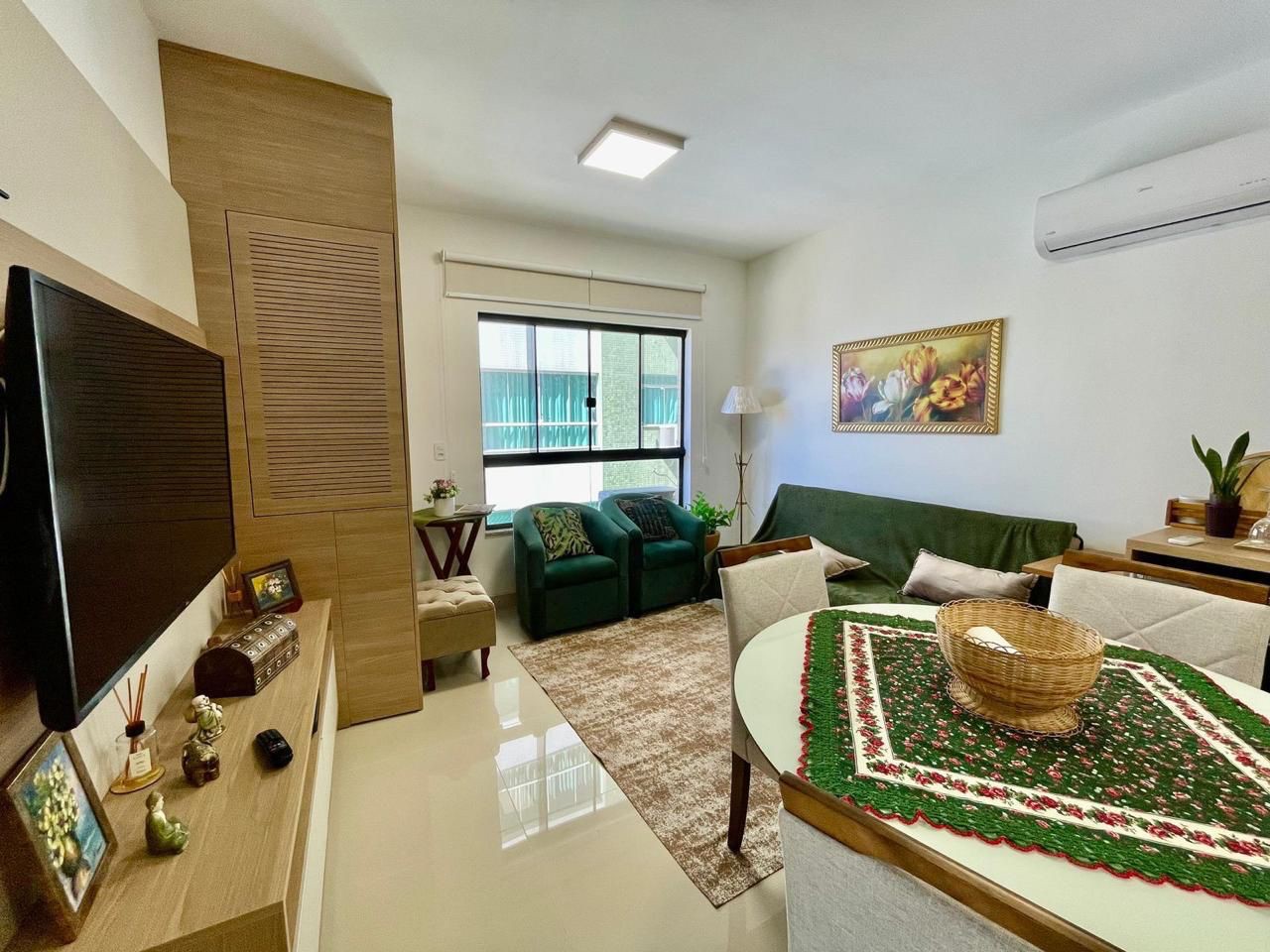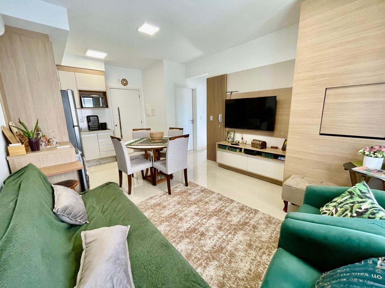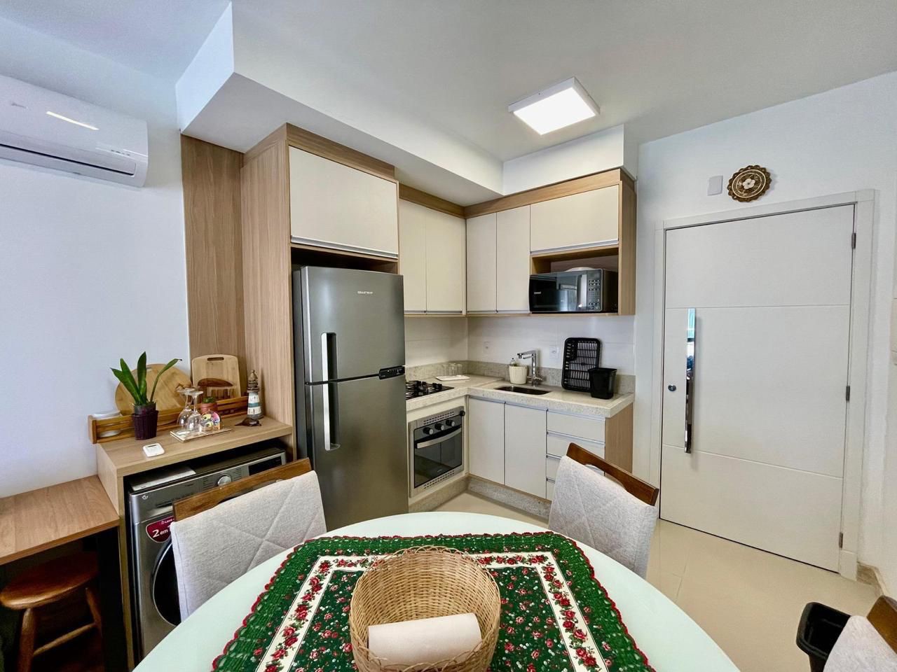 Apartamento mobiliado e decorado com 2 dormitórios, sendo 1 suíte, e banheiro social. Conta com sacada integrada, churrasqueira e box de garagem. O prédio oferece excelente infraestrutura, incluindo salão de festas, piscina, academia e zeladoria permanente. Segurança com portão e porteiro eletrônico, proporcionando conforto e praticidade.