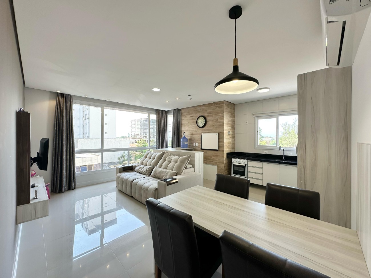Apartamento à venda, de frente, ideal para quem busca conforto e praticidade. O imóvel possui 2 dormitórios, sendo 1 suíte, banheiro social, cozinha americana e lavanderia separada. O living é integrado para estar e jantar, e o apartamento é totalmente mobiliado e climatizado, com 97, 02 m² de área total (71, 76 m² privativos). Conta com box de 13, 54 m² e depósito de 5, 63 m², com espaços adicionais. Localizado no bairro Zona Nova, em edifício com 2 elevadores, zeladora permanente e hall mobiliado e decorado. Aproveite essa excelente oportunidade!