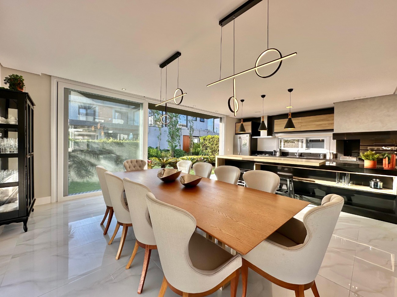 Magnífico sobrado, finamente mobiliado e decorado, com 313 m2 de área construída. Composto por 4 suítes, sendo uma com banheira de hidromassagem (sendo 01 suíte térrea); Amplo living 3 ambientes com lareira e pé direito elevado; Estar íntimo; Cozinha americana com espaço gourmet e churrasqueira; Área de serviços e abrigo para 2 veículos; Alto padrão de acabamentos: piso porcelanato, persianas automatizadas e lindo projeto de iluminação. Lindo jardim com paisagismo moderno!