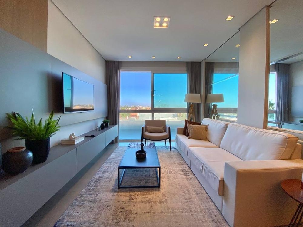 ? Apartamento Alto Padrão com Vista para o Mar? Excelente oportunidade para quem busca conforto, sofisticação e localização privilegiada! Este belíssimo apartamento conta com 123, 24 m² privativos, muito bem distribuídos em 02 dormitórios, sendo 01 suíte, além de banheiro social. Totalmente mobiliado e decorado, com living amplo, ambientes integrados e cozinha estilo americana, proporcionando praticidade e elegância. A área social se destaca pela churrasqueira e pela vista para o mar, criando o cenário perfeito para momentos especiais. Possui área de serviço separada, todos os ambientes climatizados e box de garagem. ? Posição solar Sul? Vista para o mar? Apenas 03 quadras do mar, na divisa de Atlântida