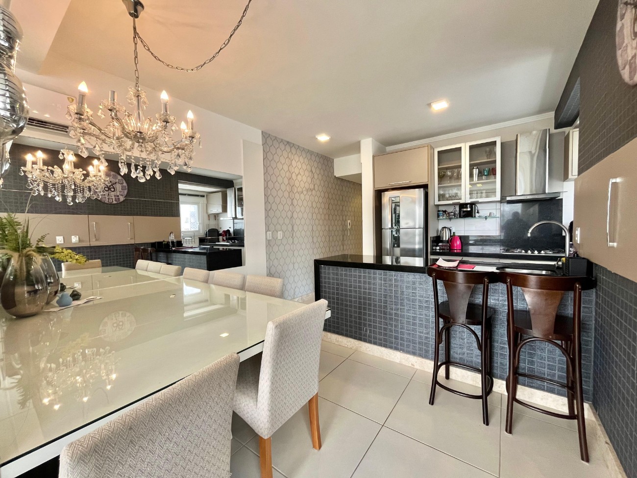 Apartamento mobiliado e decorado, composto de 3 amplos dormitórios sendo 1 suíte, living 2 ambientes com sacada integrada, vista para o mar e praça, churrasqueira, cozinha estilo americana, área de serviço, piso porcelanato, banheiro social, espera para ar-split, box duplo de estacionamento. Edifício 100% pastilhado, hall de entrada decorado, 2 quadras do mar, portão e porteiro eletrônicos e zeladoria permanente. Pagamento direto com o proprietário em ate 60x ou plano safra