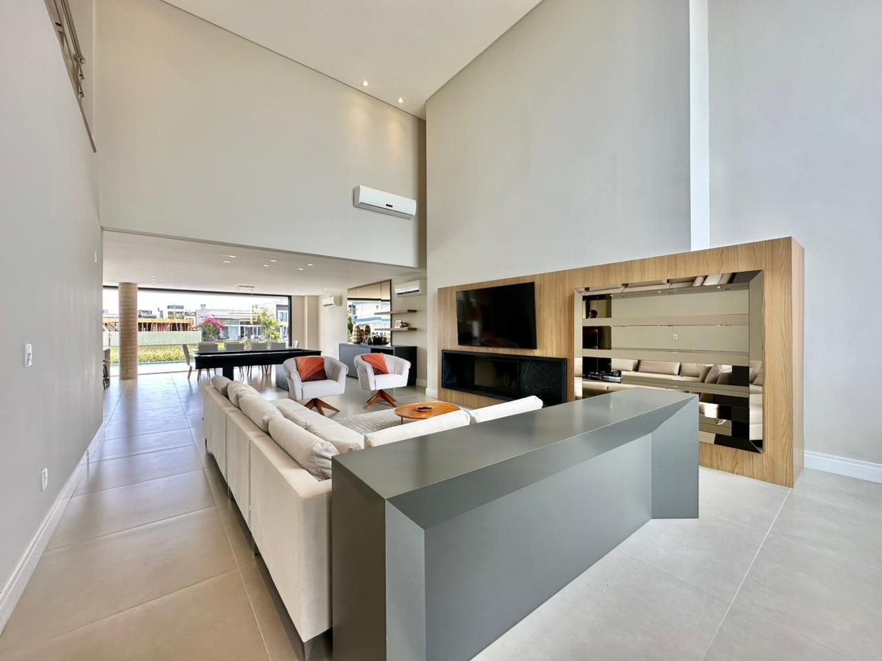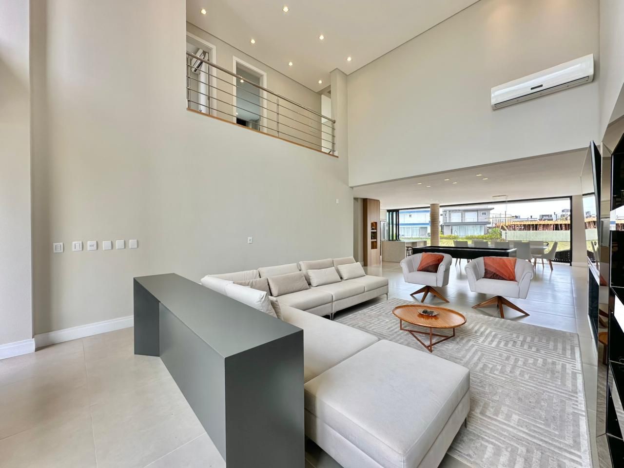 Esta casa à beira do lago é simplesmente deslumbrante e feita para quem não abre mão de morar com sofisticação, conforto e uma vista de tirar o fôlego. Com 357 m² de área privativa, o imóvel oferece 04 dormitórios, sendo 02 suítes, além de banheiro social e lavabo. A posição solar Norte garante ambientes iluminados o dia inteiro, enquanto o living de 3 ambientes entrega amplitude, integração e aquele toque de elegância que encanta já na primeira visita. Totalmente mobiliada e decorada com alto padrão, a casa conta com cozinha equipada, área de serviço, automação moderna e uma banheira com hidromassagem com vista direta para o lago — um verdadeiro refúgio para quem busca momentos de relaxamento. A piscina de concreto, o acesso direto ao lago principal e o visual exclusivo tornam este imóvel absolutamente diferenciado. Semi-nova, pensada para pessoas exigentes e com garagem para 2 carros, esta residência reúne o melhor do conforto, estilo e qualidade em um só lugar. Um imóvel raro, imponente e pronto para proporcionar uma experiência de vida única.