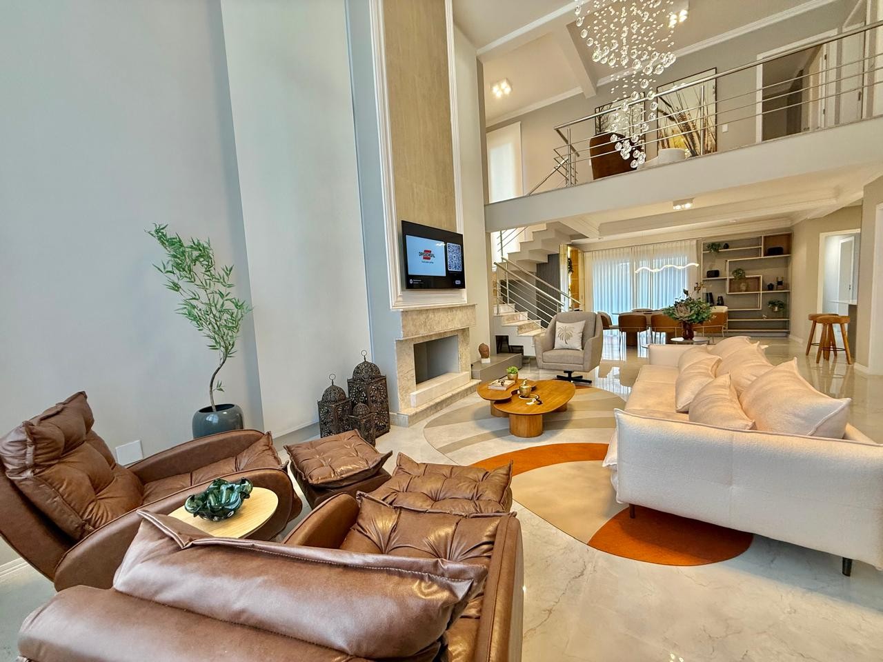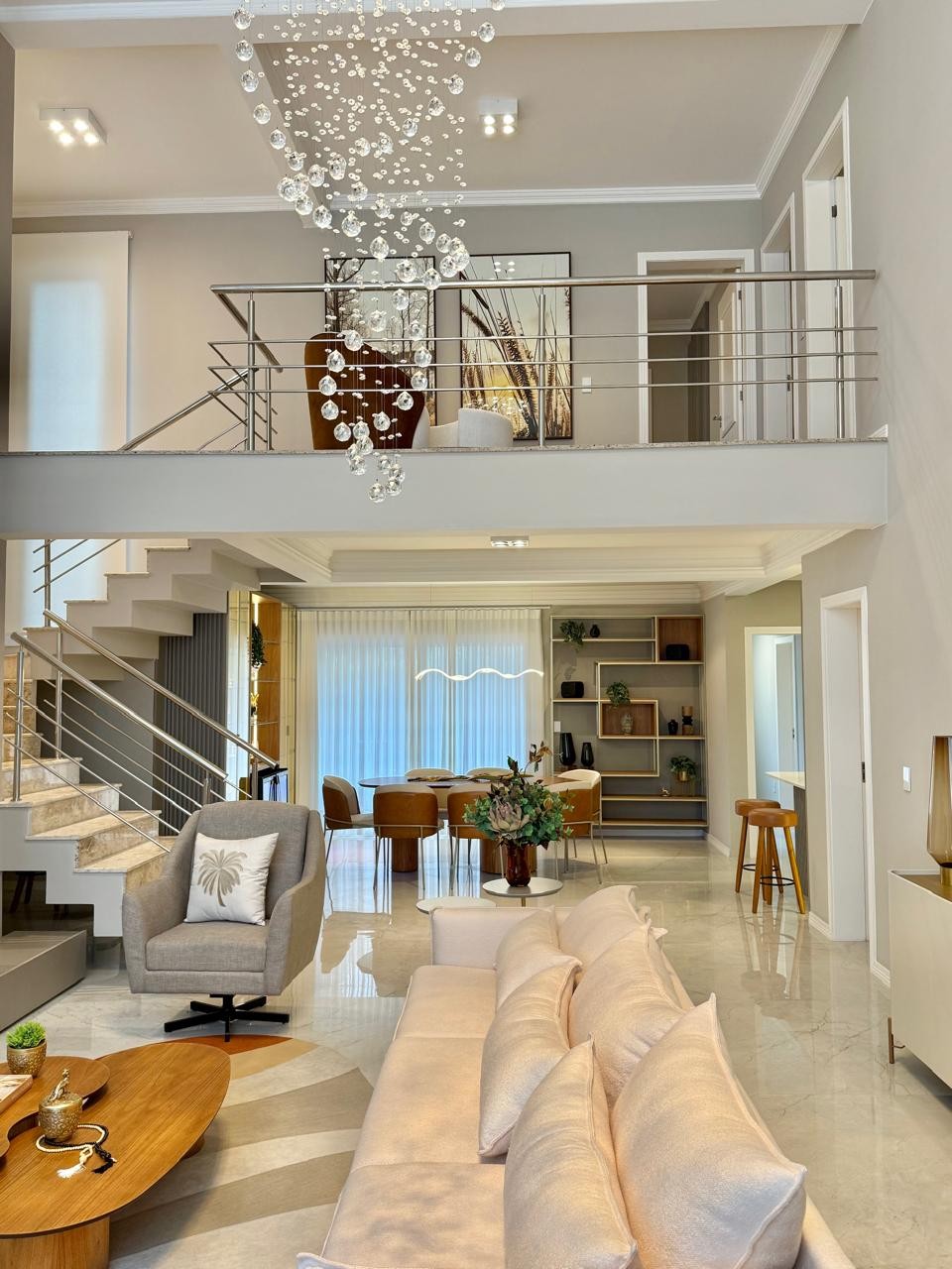 Este sobrado com uma excelente localização no Condomínio Condado oferece conforto e modernidade em todos os detalhes. A entrada é marcada por uma porta em PVC e uma fechadura eletrônica, garantindo segurança e praticidade. O imóvel é totalmente automatizado, com integração via Alexa e aplicativos, proporcionando comodidade no controle de diversos ambientes. O terreno de 300m² e a área privativa de 254m² oferecem amplo espaço para viver com qualidade. No pavimento superior, estão localizadas 3 suítes bem distribuídas, enquanto o térreo conta com um quarto adicional, ideal para atender às suas necessidades. O living integrado de estar e jantar é espaçoso e perfeito para momentos em família ou com amigos. A cozinha é separada, proporcionando funcionalidade, enquanto a lavanderia e o lavabo garantem ainda mais praticidade. O sobrado conta com um jardim de inverno, jardim com irrigação e iluminação, além de calçadas em pedra, que agregam charme e sofisticação ao ambiente externo. A área de lazer é completa, com churrasqueira e lareira, ideal para criar momentos de descontração. Todas as pedras utilizadas são de quartzo, oferecendo durabilidade e beleza. Com garagem para dois carros, este imóvel é uma excelente oportunidade para quem busca um lar moderno, funcional e com uma localização privilegiada.